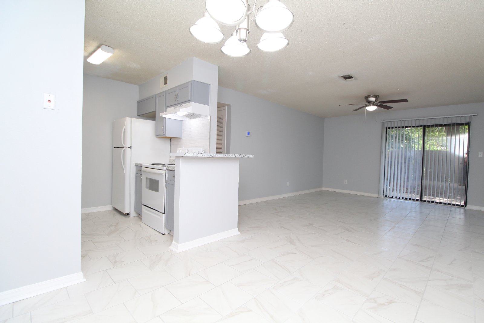 Updated 2BR/2BA 1st-Floor Condo – Available Now! This 2-bedroom, 2-bathroom first-floor condo is conveniently located off Fairfield, near Mobile Hwy in West Pensacola. The unit features an open living and dining area with beautiful tile floors throughout, sliding glass doors that lead to a private patio, and extra storage. The galley-style kitchen comes equipped with a dishwasher, electric stove, and refrigerator. The primary bedroom offers a private ensuite bathroom with a tub/shower combo and a spacious walk-in closet, while indoor laundry hookups are also available for your convenience. Water, sewer, trash, and lawn care are included in the rent. Pets are accepted on owner approval under 25 lbs with a $250 non-refundable fee per pet.. Residents are required to have renter liability insurance, which can be added for $11.95/month, or you can opt into our Resident Benefits Package (RBP) for $45/month, which includes renter liability insurance, HVAC air filter delivery, and on-demand pest control.